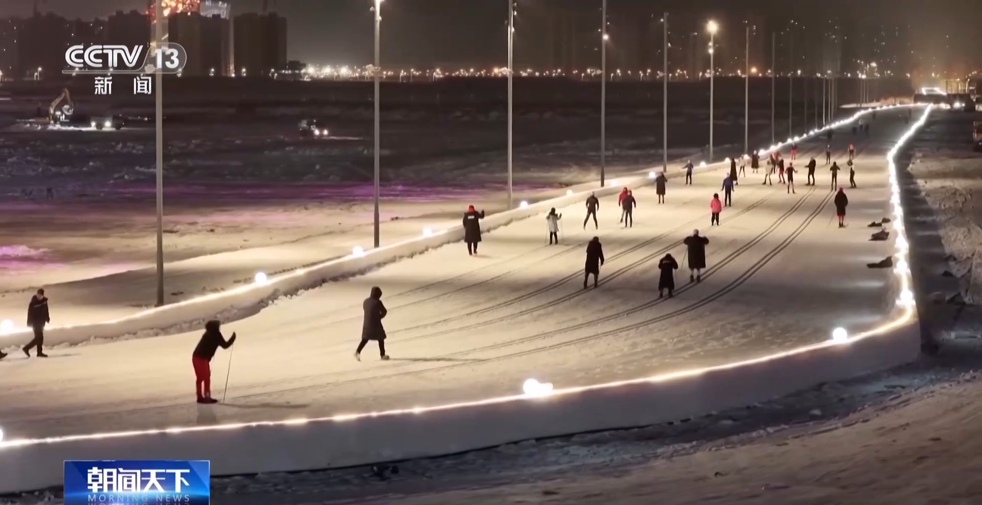 总台记者 孙晶:我所在的地方是长春市伊通河畔的肆季南河岸线公里的雪道,是全国首创的城市灯光越野滑雪场地,温度是零下22摄氏度,但现场十分热闹。
